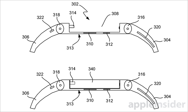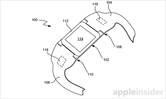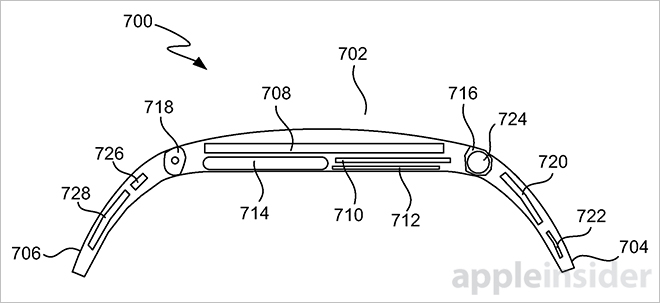 Comme publié par le US. Patent and Trademark Office, le brevet US d’Apple No. 8,787,006 pour un « dispositif électronique portable au poignet et des procédés connexes » décrit un appareil (baptisé « iTime » dans l’une des illustrations) qui correspond parfaitement à la smartwatch « iWatch » décrite par de récentes rumeurs.