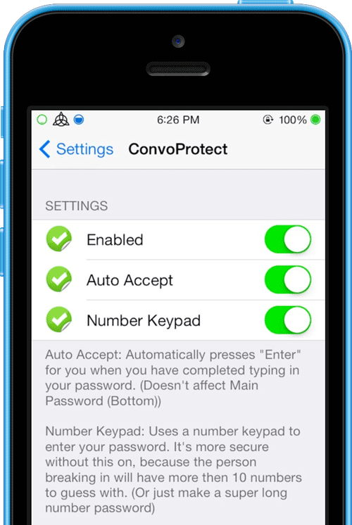 Avec le jailbreak, il est possible de sécuriser certaines applications de votre appareil en obligeant la saisie d’un code secret ou l’utilisation du TouchI D pour les ouvrir.