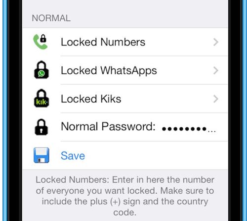 Beaucoup d’autres options sont disponibles et donnent par exemple la possibilité de choisir les conversations à verrouiller, à cacher ou encore de définir le mot de passe générale du tweak qui sera utilisé pour les futurs accès à cette page d’options.