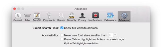 Il ya une option pour afficher l’URL complète de la page que vous êtes en train de visiter dans la barre d’adresse (qui est par défautcachée dans Safari) :