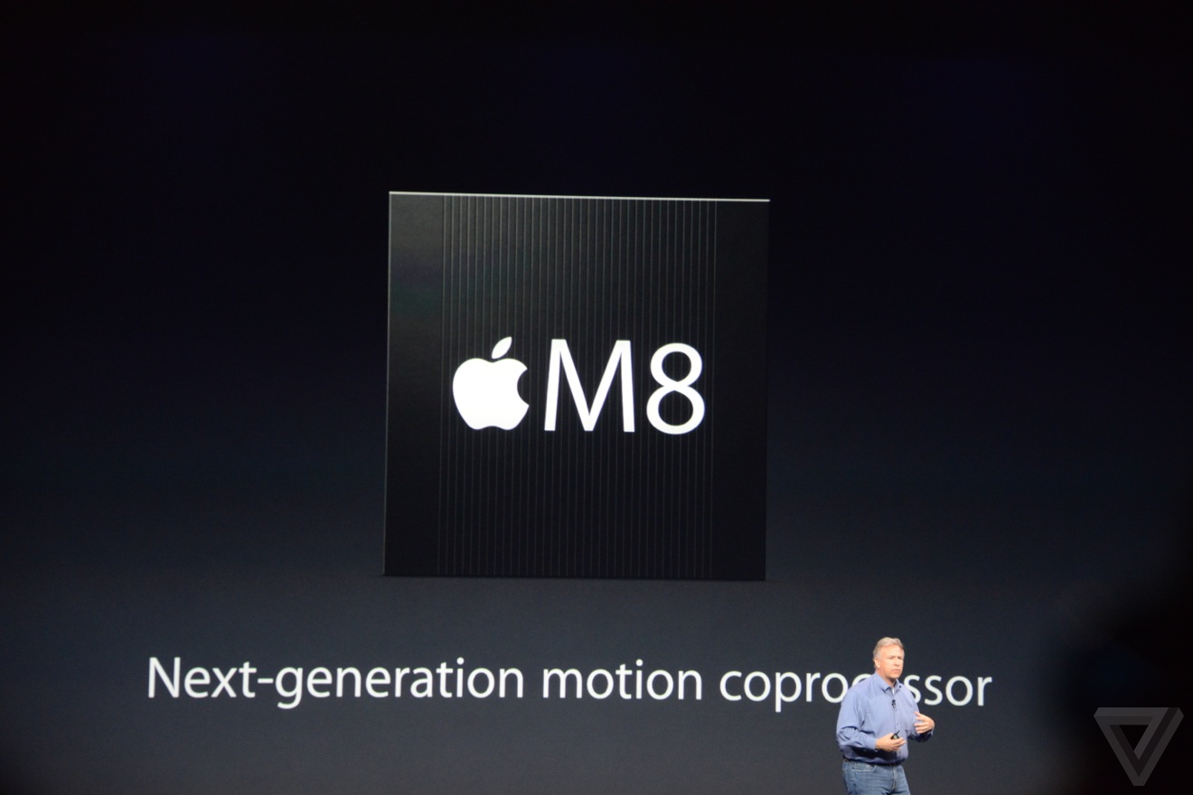 Un nouveau co-processeurs M8 est embarqué dans ces nouveaux modèles. Prenant la relève du M7 introduit dans l’iPhone 5S, il se veut plus performant permettant par exemple de distinguer tout seul si vous êtes à pied ou à vélo ou encore de compter le nombre de marches montées par jours.
