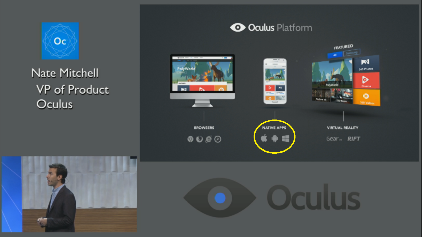 Lors de son dernier keynote, Oculus a en effet présenté une diapositive révélant que des applications natives vont arriver sur iOS d’Apple, Android de Google et Windows Phone de Microsoft.