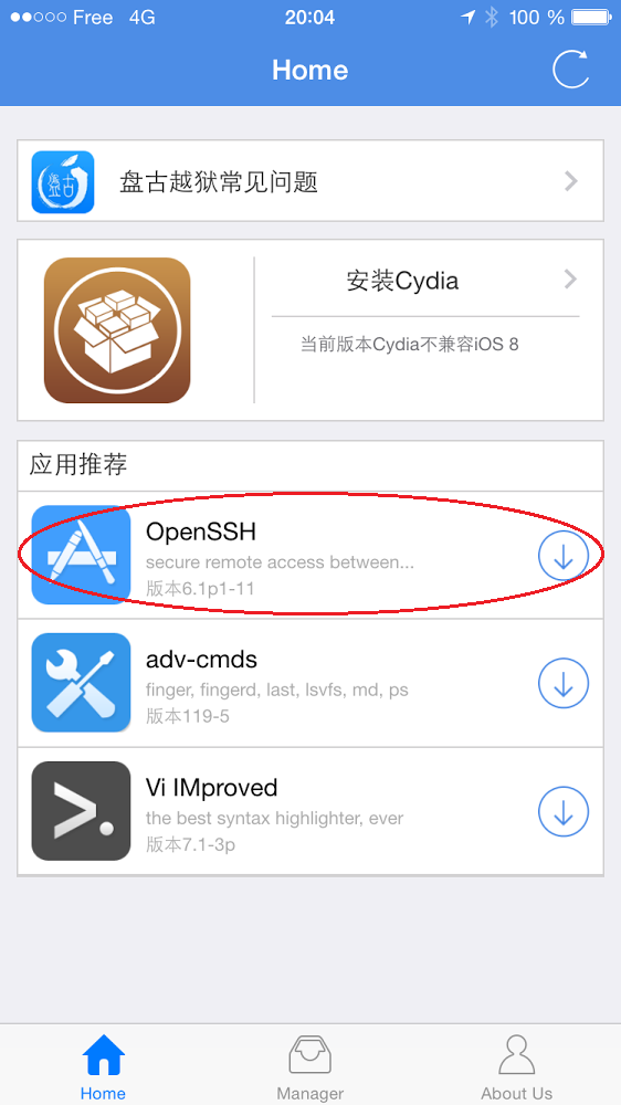 Dans cette étape, nous allons installer « OpenSSH » qui nous permettra ensuite d’installer manuellement Cydia.