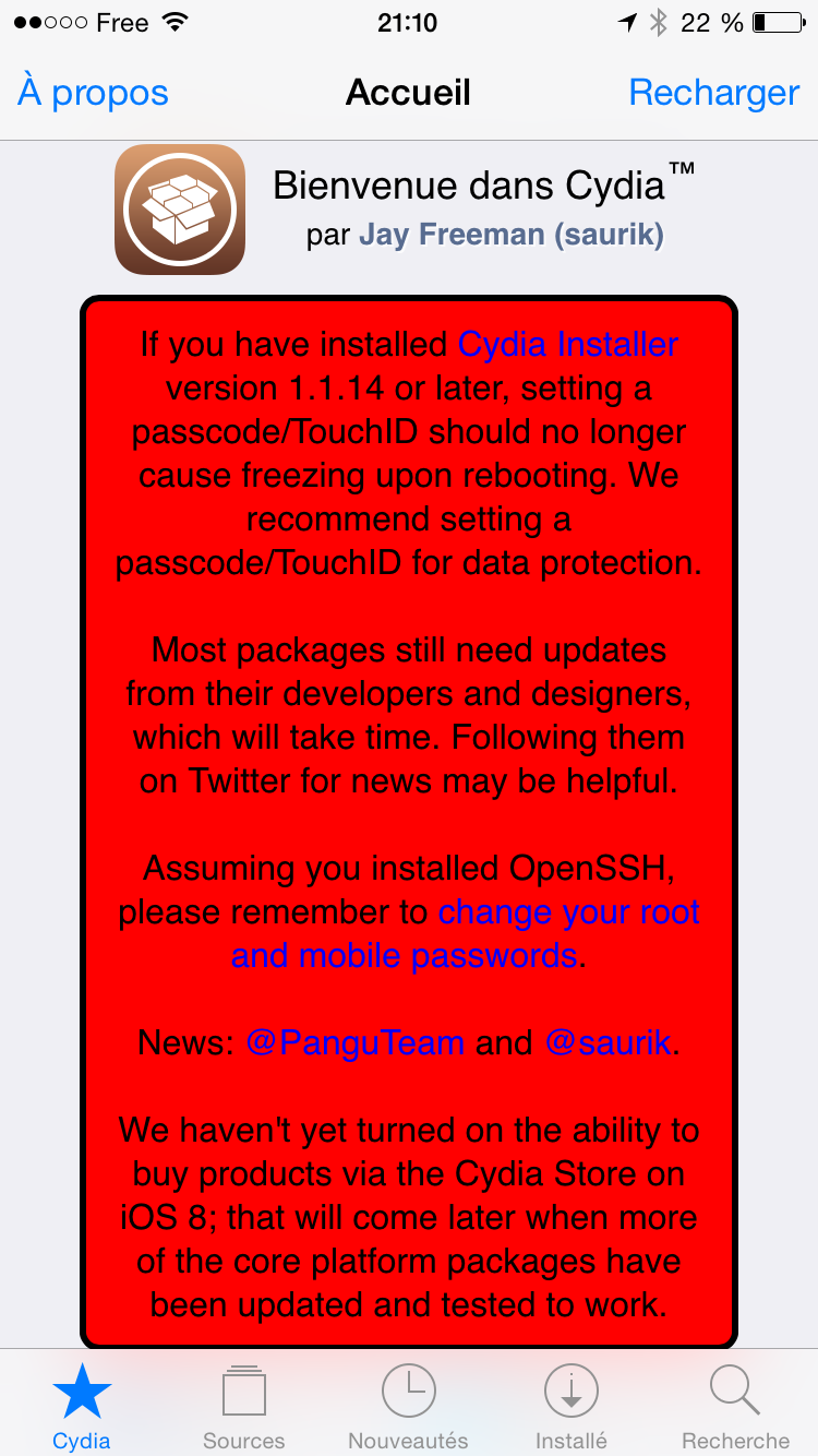 Magnifique ! Merci à Appsysteme pour ce jailbreak ios 8 tant attendu , merci !!!!
