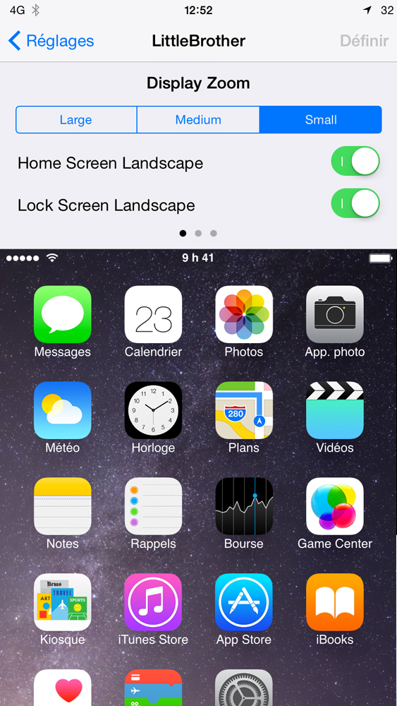 Ce nouveau tweak développé par le célèbre Ryan Petrich vous permet de contrôler plus précisément le zoom de l’affichage de votre appareil ainsi que certaines options d’orientation.