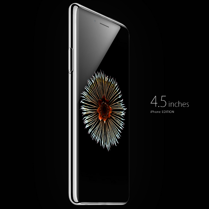 – L’iPhone Edition de Grisha Serov est tout d’abord équipé d’un écran sans bordures latérales de 4.5 pouces de diagonale contre 4.7 pouces pour celui de l’iPhone 6 ;