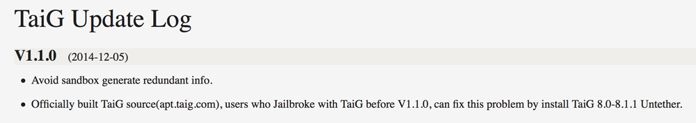 Tout comme la team PanGu lors de la mise à disposition de son outil PanGu8, la team TaiG reste très active et propose régulièrement des mises à jour de son jailbreak afin de le rendre le plus stable possible.