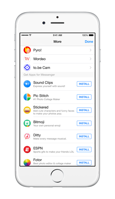 App Store Bitmoji Camoji développeurs ESPN facebook facebook messenger Giphy Talking Tom zuckerberg