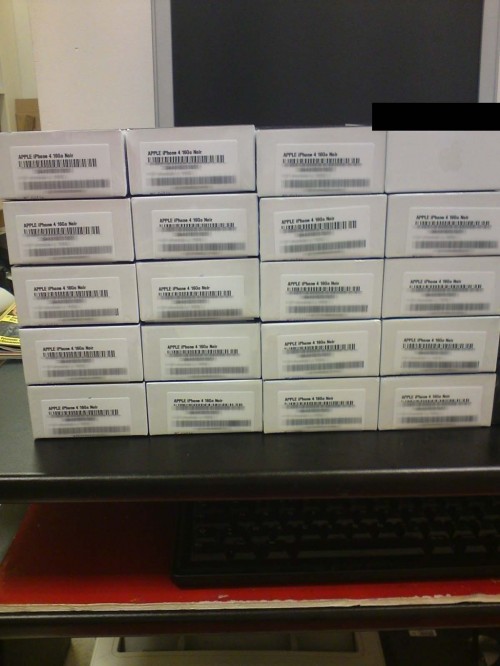 « les photos en exclusivité totale des stocks d’iPhone 4 chez un opérateur français. »