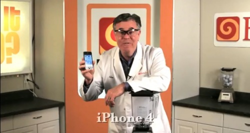 Pour ceux qui ne sont pas au courant, un scientifique fou s’amuse à broyer au mixeur tous les nouveaux appareils d’Apple, d’après lui « histoire de tester leur résistance ».