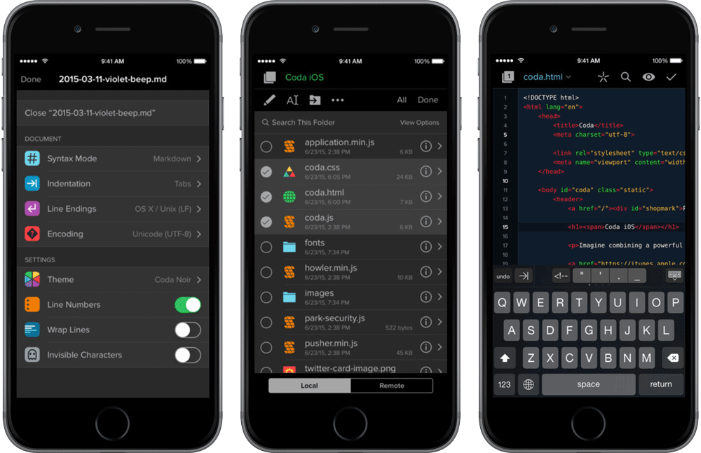 Coda est la solution ultime ! Il s’agit d’une des applications d’édition de page web la plus performante du moment. L’app a été totalement revue et devient entre autre compatible avec les iPhone. HTML, Javascript, SQL et bien sûr Swift, l’éditeur est compatible avec une multitude de langages de programmation.
