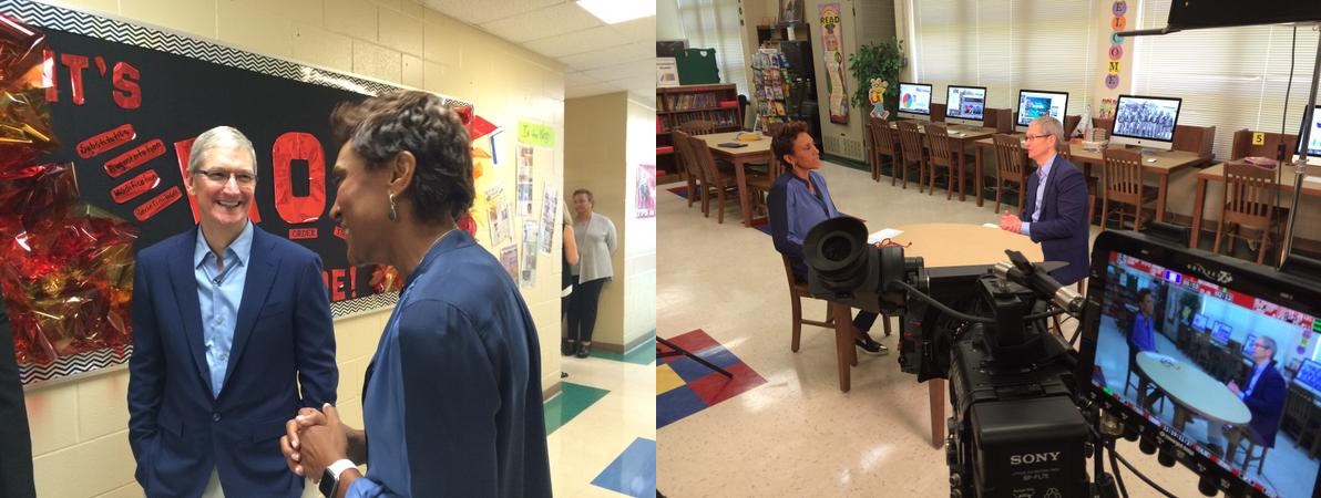 Tim Cook sera invité demain dans l’émission matinale Good Morning America, sur la chaîne télévisée ABC. Sur l’image de présentation diffusée par la chaîne, on découvre le PDG d’Apple s’entretenant avec le présentateur Robin Roberts dans un bus scolaire. En arrière-plan sont disposés de nombreux iMac.