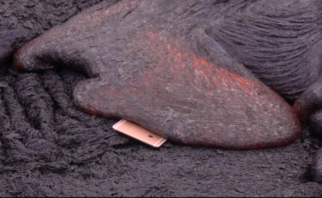 Ainsi, vous appreniez récemment que votre iPhone 6s tout neuf ne tiendrait pas le choc si par malheur vous croisiez un champion de MMA particulièrement remonté (cf. Insolite : il explose l’iPhone 6s en un coup de pied). Que se passerait-il maintenant si vous trébuchiez au pied d’un volcan et que votre smartphone glissait de votre poche pour atterrir dans la lave ?
