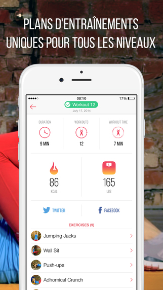 Une application de remise en forme conçue spécifiquement pour la perte de poids. Les entraînements de 7 minutes sélectionnés soigneusement vous aideront à atteindre votre objectif en termes de poids !