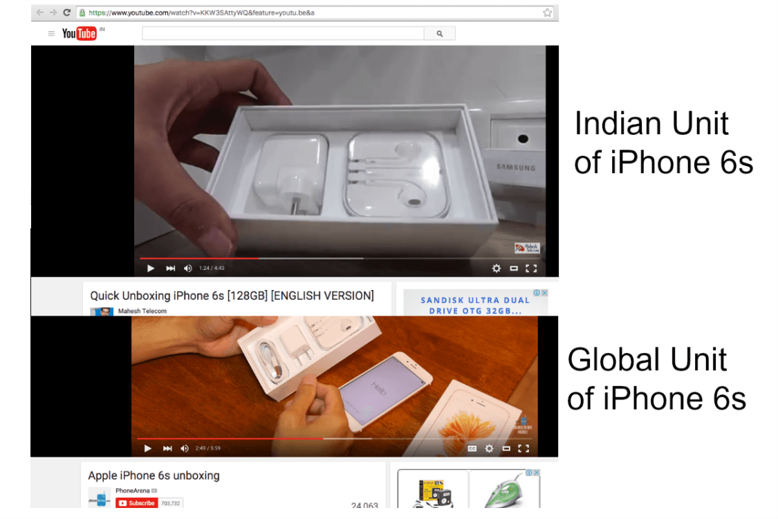 Cependant, Mahesh Telecom, un détaillant en Inde dans sa vidéo, présente explicitement le chargeur de 10 watts avec son iPhone 6s. Les vidéos du Times of India en font également état, de même que de nombreux clients sur Twitter.