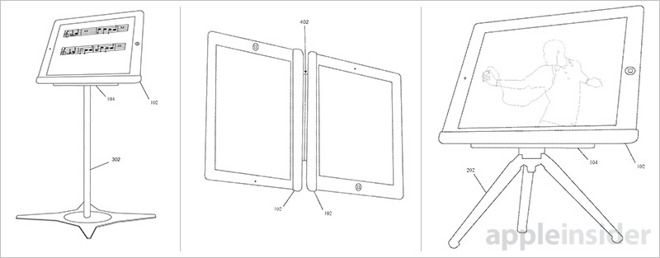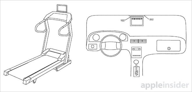 Deux captures schématiques permettent notamment de voir la tablette charger des portées musicales, un suivi de l’activité cardiaque ou des livres électroniques lorsqu’elle est disposée sur un pupitre, un tapis roulant ou sur le tableau de bord d’une voiture.