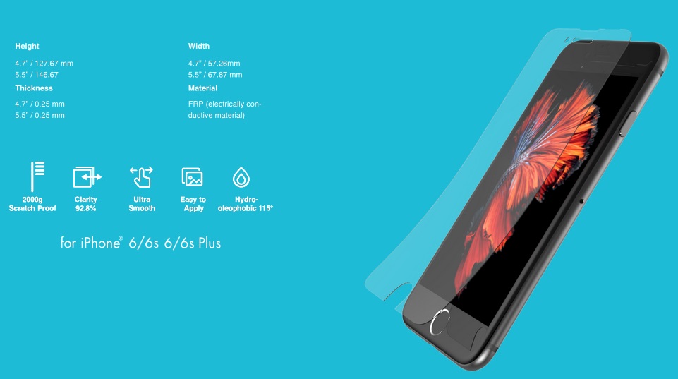 Le film de protection est en fait constitué d’un mélange de matières plastiques couvrant une épaisseur de 0.25 mm et conduisant l’électricité grâce à un revêtement hydrophobe et oléophobe. Cette dernière propriété lui confère l’avantage de repousser pratiquement tout type de liquide, ce qui devrait permettre de laisser moins d’empreintes.