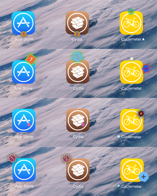Disponible pour le jailbreak d’iOS 8 comme d’iOS 9, la dernière version propose quelques nouveautés attendues. De nouvelles formes ont été ajoutées pour les badges de notification et de suppression d’application. Pour pourrait dorénavant utiliser un triangle inversé à la place du classique rond ou utiliser les formes déjà disponibles dans les précédentes versions.