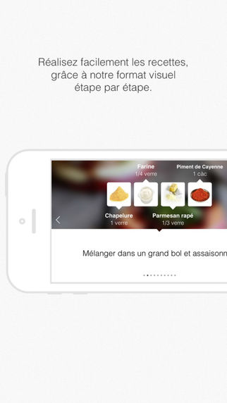 Cette application moderne vous propose un format d’affichage qui rompt franchement avec une triste liste d’ingrédients en mettant l’accent sur des éléments visuels parlants, des textes courts et expressifs décrivant étape par étape comment réaliser avec succès tel ou tel plat. La manière d’avancer dans la recette par un défilement est particulèrement intuitive.