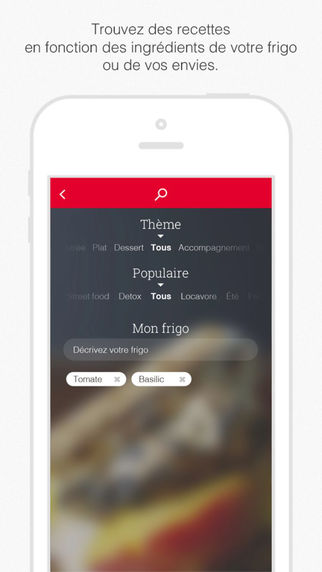 En panne d’inspiration ? L’app vous propose des sections thématiques ainsi qu’un moteur de recherche intelligent qui vous permet de composer avec les moyens de bord (le contenu de votre réfrigérateur et de vos placard) ainsi que vos envies du moment.