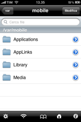 iFile est un utilitaire très puissant disponible sur le Cydia Store qui va vous permettre d’explorer votre appareil comme en SSH, mais depuis votre appareil. De plus, il dispose de très nombreuses fonctionnalités comme la possibilité de copier coller des fichiers, de les zipper, d’une visionneuse d’image et de vidéo, de modifier des plist et des fichiers etc …