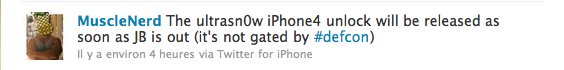 C’est via son twitter que MuscleNerd a annoncé que le désimlock de l’iPhone 4 sortirait rapidement après la sortie du jailbreak de l’iOS 4.