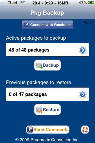 PKGBackup est une application plutôt intéressante car elle va vous permettre de sauvegarder toutes vos données Cydia. Ainsi, sources et paquets installés ne seront pas effacés si vous restaurez votre appareil.