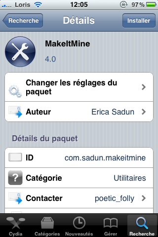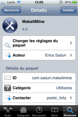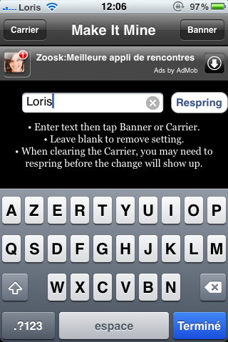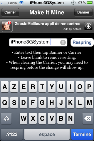 MakeItMine est une excellente application qui va vous permettre de modifier le CARRIER de votre appareil.
