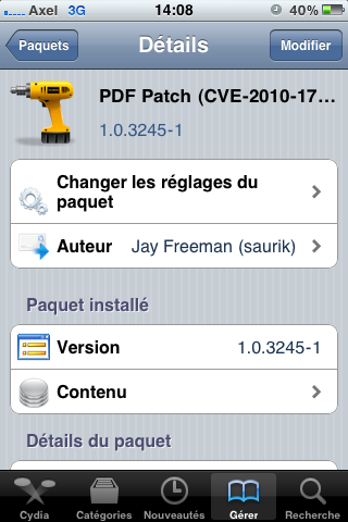 PDF Patch est un addon disponible sur Cydia qui a permettre de sécuriser votre iPhone au risque d’intrusion non désirée par la faille qu’utilise jailbreakeme.