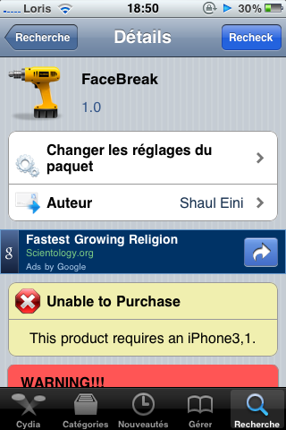 Compatible uniquement pour iPhone 4, FaceBreak vous coutera tout de même 1.49$ sur le Cydia Store