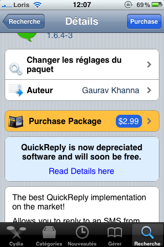 C’est via Cydia que Gaurav Khanna, développeur de QuickReply, a déclaré que son soft allait bientôt devenir gratuit.