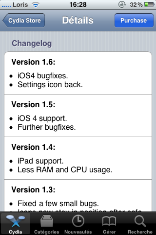salut, c’est moi qui a donné le deb mais Loris peut pas le mettre il y a trop de dependance mais tu peut le télécharger sur mon repo : http://cydia.myrepospace.com/sindou-windou/