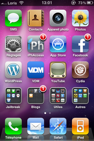 Une fois installé, vous remarquez que l’icône de recherche spotlight a disparu du SpringBoard !
