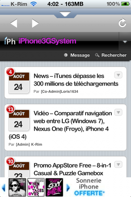 Très bon travail à toute l’équipe de Iphone3gsystem !! Félicitation !! C cool d’avoir les news tous les jours !