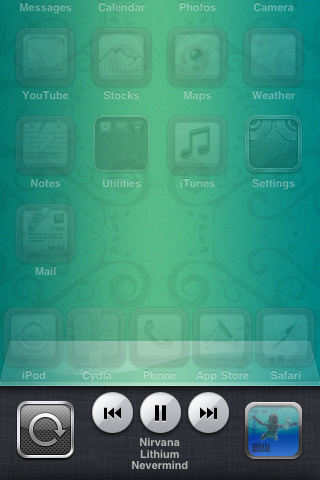 Une fois le tweak installé et un petit respring fait, il vous suffit de lancer de la musique depuis l’application iPod et appuyer 2 fois sur le bouton home (rond) afin d’afficher le dock multitâche.