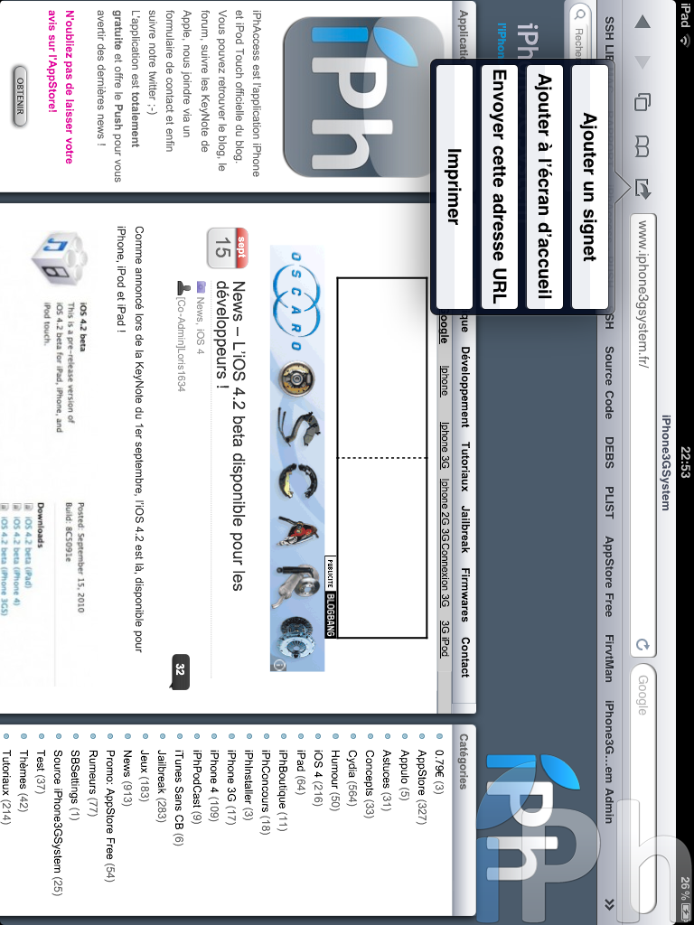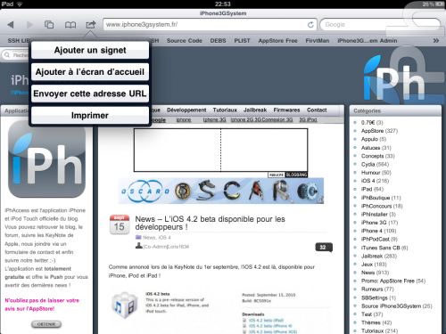 #Safari sur l’iPad, avec notamment un nouveau bouton vous permettant d’accéder au menu « Imprimer »