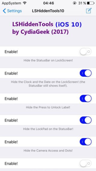Si vous souhaitez épurer votre écran de verrouillage et le rendre plus simpliste, le tweak LSHiddenTools10, créé par CydiaGeek va vous permettre de masquer des éléments du Lockscreen de l’iPhone.