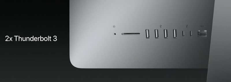 Les USB-C et les Thunderbolt 3 arrivent sur iMac, tandis que les SSD sont jusqu’à 2 fois plus rapides. Les nouveaux iMac sont annoncés comme étant 80% plus performants en termes de graphismes que les iMac précédents.