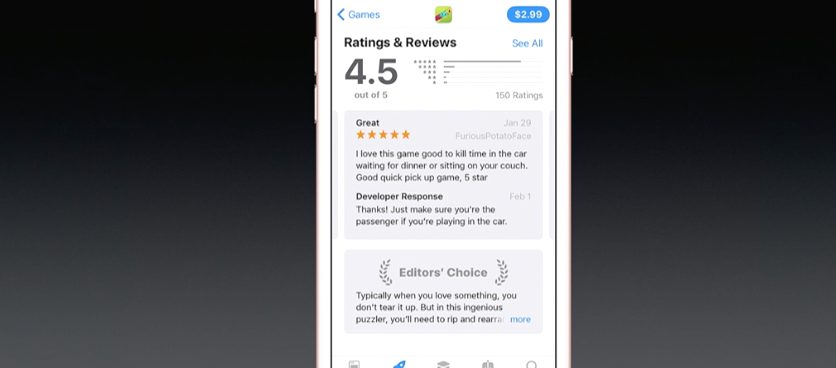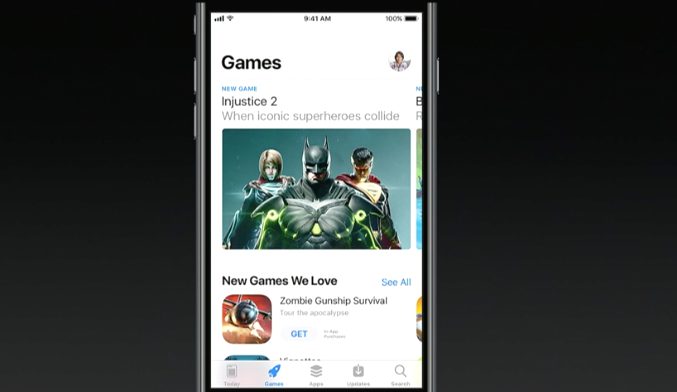 - Espace dédié aux jeux dans l’App Store & nouvelles présentation pour les apps