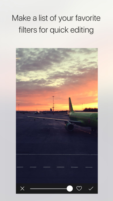 Créez vos propres filtres photos et sauvegardez-les pour pouvoir les réutiliser. Nécessite iOS 8.0 ou une version ultérieure. Sans achats in-app.