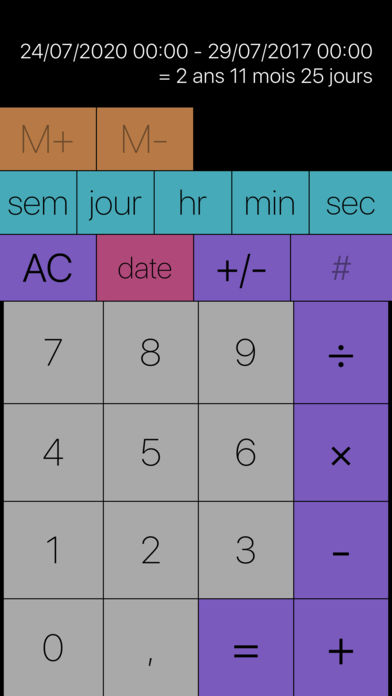Time Calc calcule les nombres, les durées et les dates. Nécessite iOS 9.1 ou une version ultérieure. Sans achats in-app.