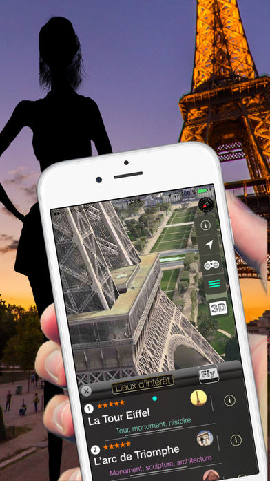 Des survols automatiques avec le mode Flyover, vous permettent de découvrir judicieusement chaque lieu d’intérêt à Paris. Les lieux d’intérêt sont classés, numérotés avec une fiche de description et l’itinéraire pour y aller, un menu intuitif avec des fonctions indispensables comme des accès rapide, carte en hybrid, touche 3D. Nécessite iOS 10.2 ou une version ultérieure. Sans achats in-app.