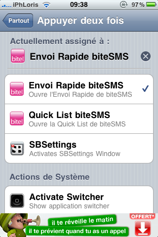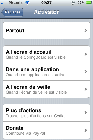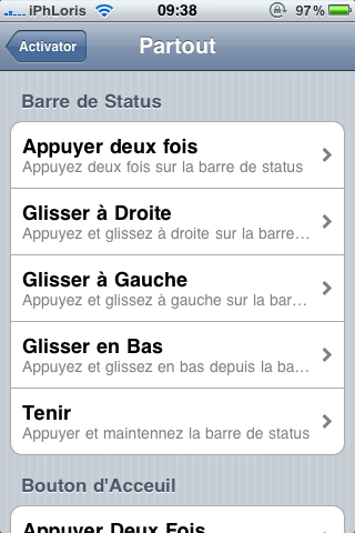 En effet, elle vous permet d’assigner des actions à certains événements (par exemple lorsque vous slidez votre doigt sur la status bar ceci est un événement qui déclenche par exemple SBSettings).