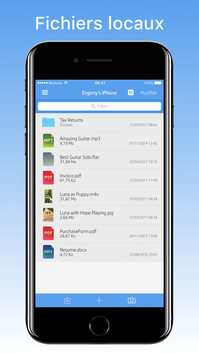Transformez votre iPhone en disque de stockage externe. Nécessite iOS 8.0 ou une version ultérieure. Sans achats in-app.