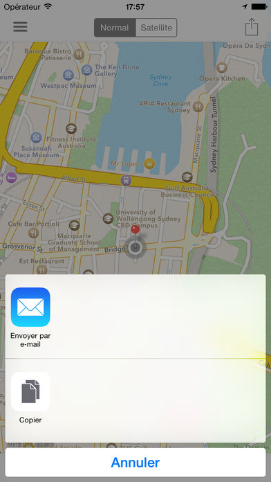 Envoyez votre position actuelle par message ou email, Twitter, Facebook et autres applications installées. Avec l’URL intégrée Catch-me vous serez en mesure de trouver très rapidement la personne qui vous a envoyé sa position. Nécessite iOS 8.4 ou une version ultérieure. Sans achats in-app.