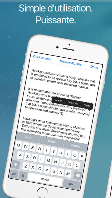 Une appli simple mais pratique pour tenir un journal. Nécessite iOS 9.0 ou une version ultérieure. Sans achats in-app.