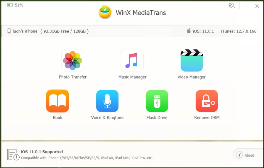Le logiciel WinX MediaTrans vous permet, tout comme iTunes, de gérer vos fichiers multimédia sur iPhone, iPad et iPod touch sur votre PC Windows. La différence est que celui-ci vous propose de le faire en toute liberté et de vous affranchir des restrictions imposées par le DRM iTunes.