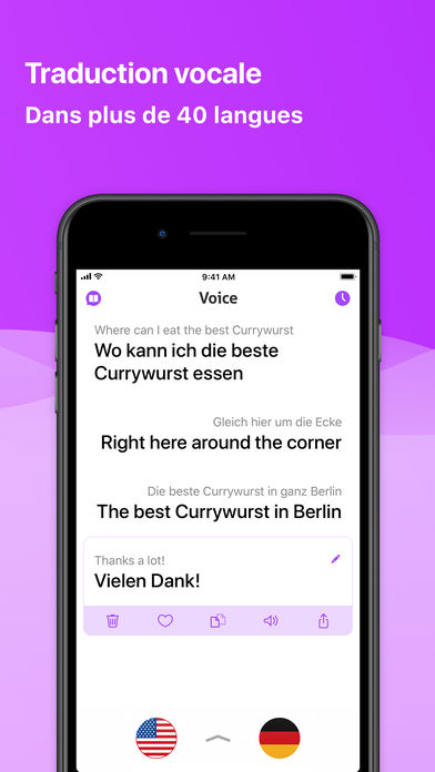 Parlez instantanément dans plus de 40 langues. Avec plus de 250 expressions prédéfinies, ce guide de conversation est conçu pour vous aider dans n’importe quelle situation. L’appli possède également une fonction de transcription vous permet d’exporter ou de partager votre conversation en quelques secondes. Nécessite iOS 10.0 ou une version ultérieure. Sans achats in-app.