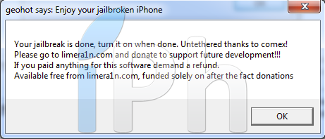 Le Jailbreak est untethred et grâce à Comex et à vie grâce à GeoHot.