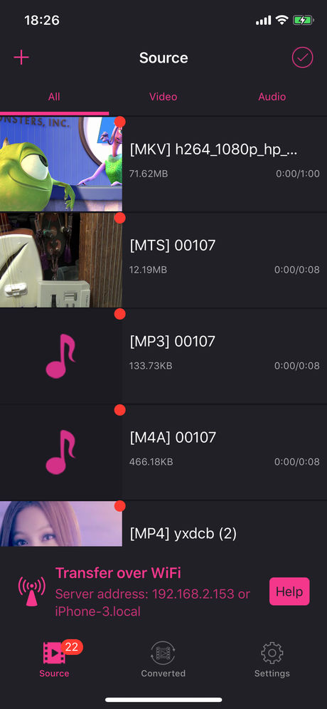 Convertisseur de vidéos pour iPhone. Les formats supportés sont : mp4, mkv, mov, mpeg, mpg, avi, flv, wmv, mp3, m4a, m4r, wav et aac.